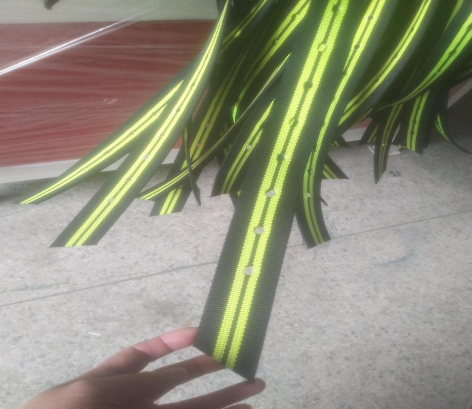 4. 織帶沖孔剪切一次性完成:超聲切帶沖孔,自動(dòng)封口,絕無(wú)毛邊,不發(fā)黑,不發(fā)臭,平滑圓整,不散邊。